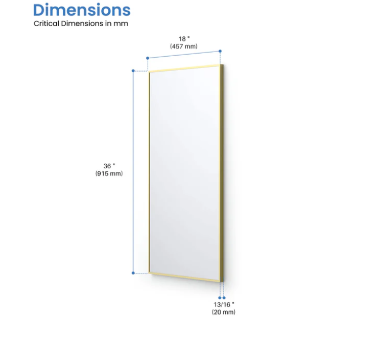 18" x 36" Shatterproof Wall Mount Metal Frame Mirror - FM1-1836