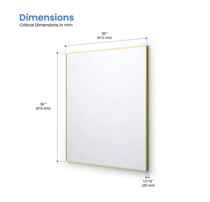 36" x 36" Shatterproof Wall Mount Metal Frame Mirror - FM1-3636